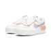 - Tento pár Nike Air Force 1 Low Shadow Amethyst Ash W má tlustou bílou podrážku a také bílý základ. - Na bílém základu najdete světle růžové překryvy a panely. - Klasický symbol Nike se objevuje na straně v pastelovém fialovém odstínu.