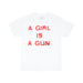 - **Stylový design:** Pleasures A Girl is a Gun T-shirt v bílé barvě zaujme na první pohled svým odvážným a originálním grafickým motivem, který dodává outfitu jedinečný nádech. - **Vysoce kvalitní materiál:** Vyrobeno z pohodlné a prodyšné bavlny, která zajišťuje maximální komfort po celý den. - **Univerzální kousek:** Díky svému minimalistickému designu se snadno kombinuje s různými styly a barvami, což umožňuje vytvářet nekonečné množství outfitů. - **Perfektní fit:** Tričko má moderní střih, který skvěle padne na jakoukoli postavu a zdůrazní vaši osobitost. - **Výrazný statement:** Toto tričko je nejen módním kouskem, ale i vyjádřením osobního postoje. Ideální pro ty, kteří se nebojí projevit svůj názor. Obohaťte svůj šatník o tento unikátní kousek!