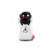 - Tento model Jordan 6 se skládá z bílého koženého svršku s šedými podklady a červenými detaily. Průhledný jazyk, vzorovaná podrážka a fialový Jumpman na patě dokončují design.